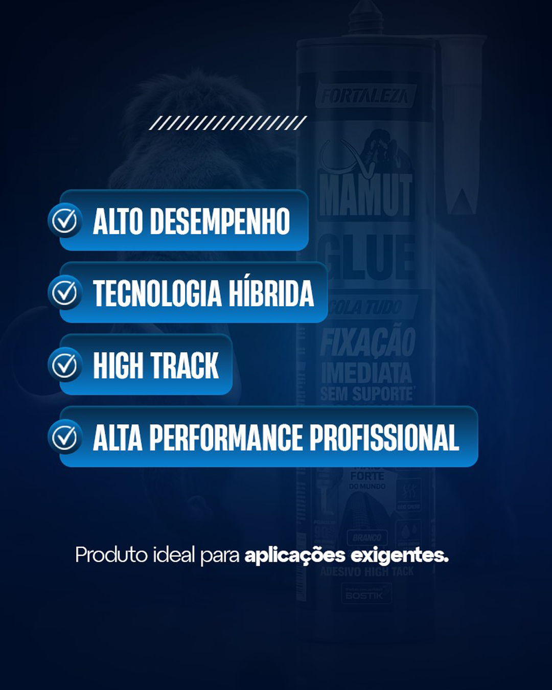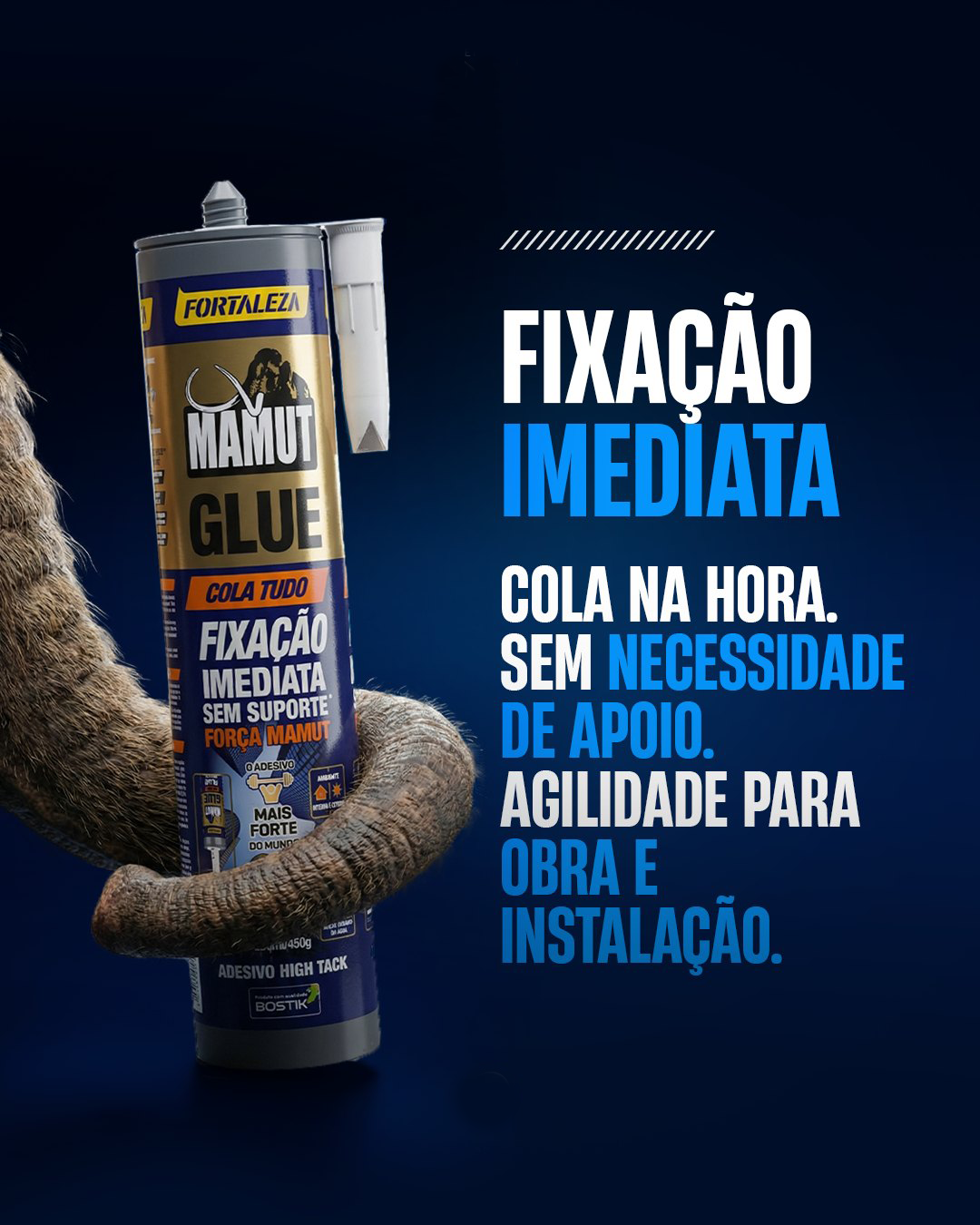Mamut Glue Fortaleza é a cola que o profissional procura quando precisa de resistência real. Fixação sem suporte, alta aderência e versatilidade para diferentes superfícies.
